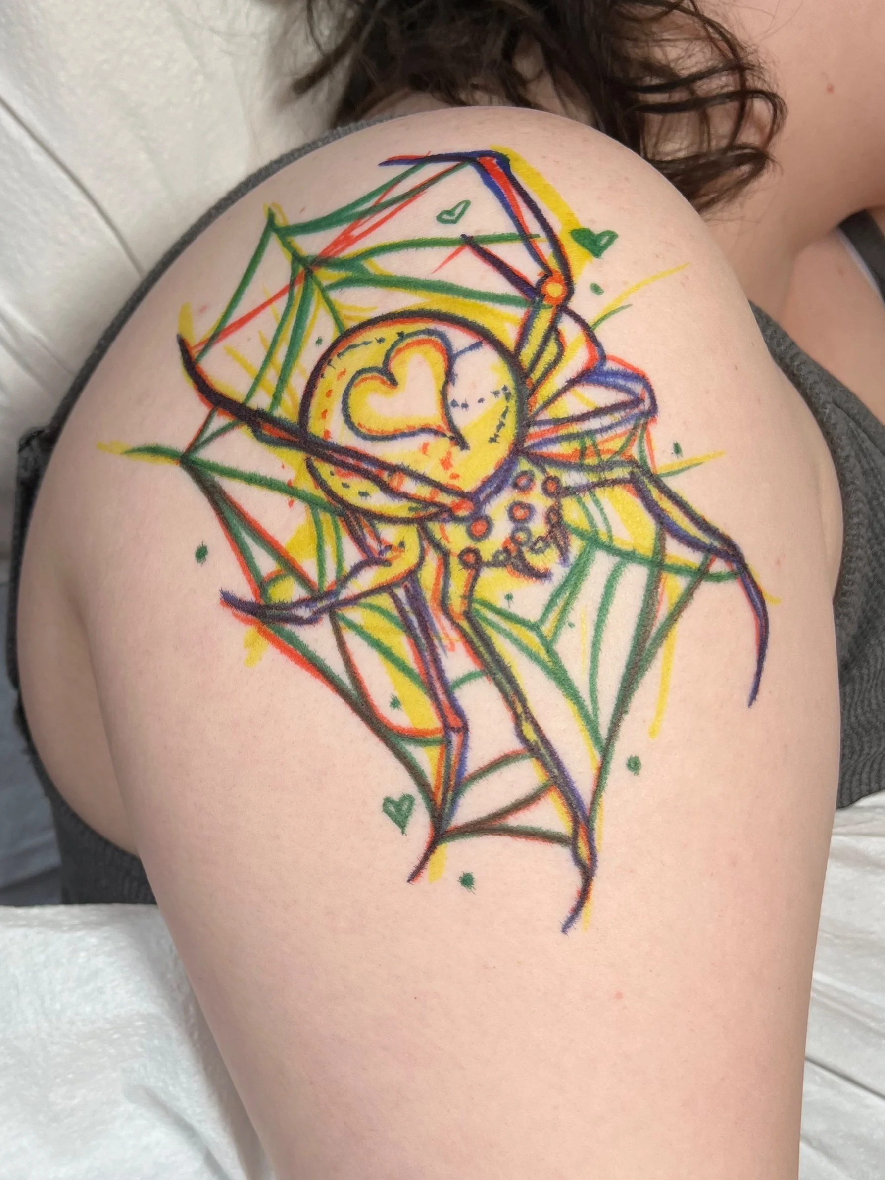 No, I never send any tattoo designs to my clients before the appointment. Most of the tattoos I do are drawn on “free handed” (see image below). I leave plenty of time in the appointment to make changes if needed.